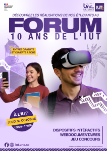 L’IUT de Nouvelle-Calédonie vous invite à son Forum des Projets Tutorés, le mercredi 30 octobre 2025 de 13h30 à 17h30, sur le campus de Nouville.